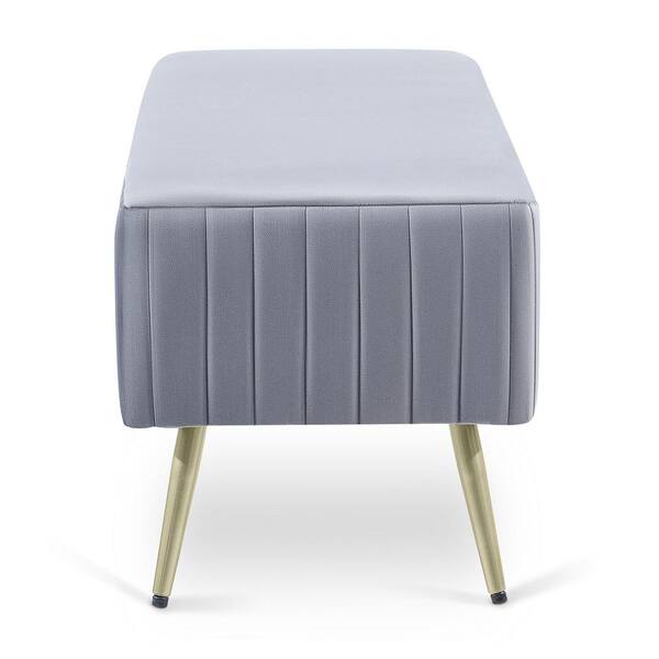 Grey Modern Upholstered Bed and Entryway Bench with Padded Velvet Seat 16 in. H x 15.6 in. W x 46 in. D