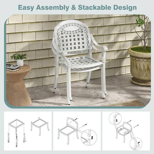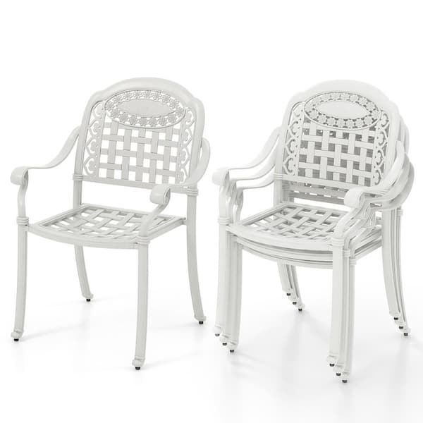Metal 4-Pieces Cast Aluminum Patio Chair Bistro White Dining Chair Outdoor Cast Aluminum Chair