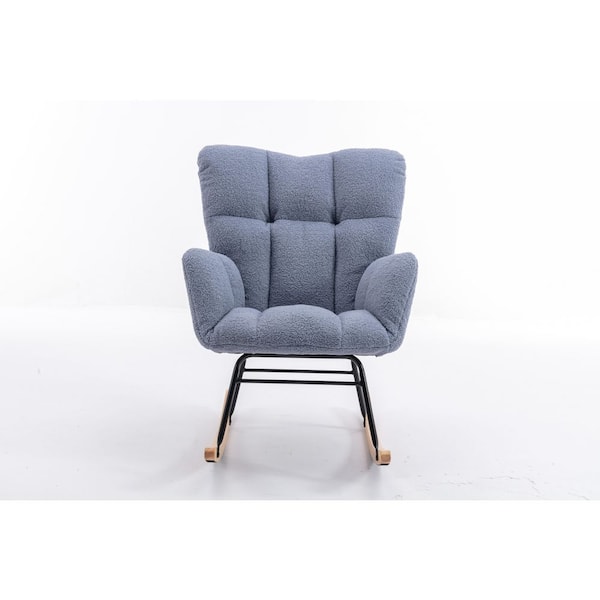 Metal Blue Teddy Fabric Outdoor Rocking Chair Gilder Nursery Chair For Living Room