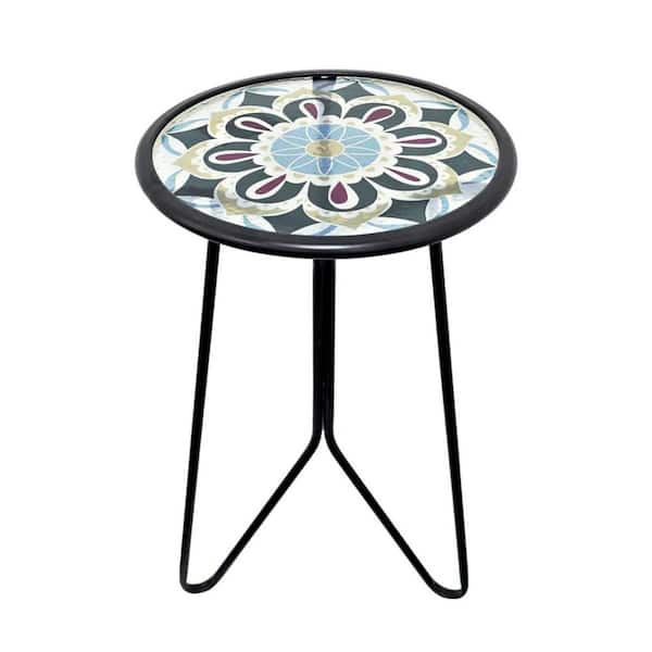Metal & Glass Outdoor Side Table, 12 in. Weather Resistant Patio Accent Side Table
