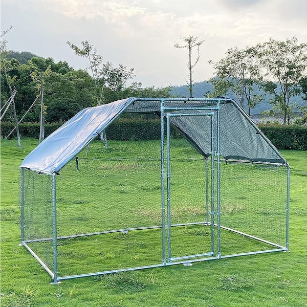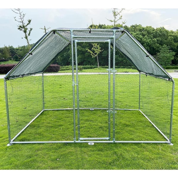 Metal Large Chicken Coop Walk-in Poultry Cage Large Chicken Run Flat Shaped Cage with Waterproof Anti-Ultraviolet Cover