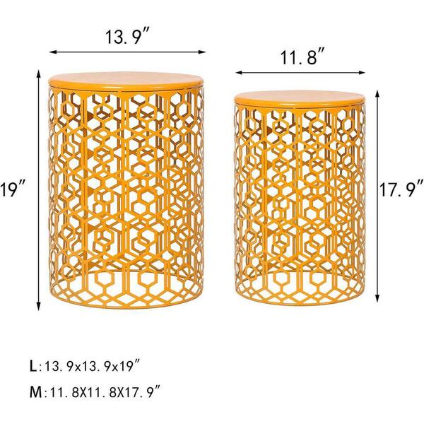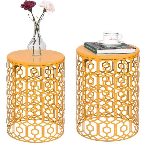 Metal Nesting Tables Round End Side Coffee Table Decorative Nightstands for Garden Outdoor in Yellow (Set of 2)
