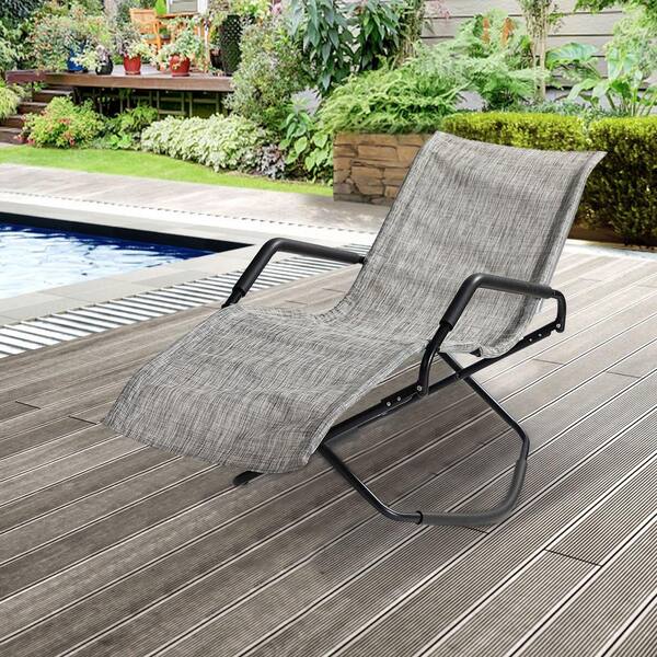 Metal Outdoor Chaise Lounge Beach Folding Chair Smoke Gray