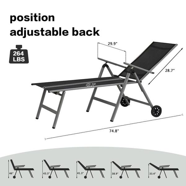 Metal Outdoor Chaise Lounge Chairs Aluminum Adjustable Chair for Poolside Patio Reclining Sunbathing Lounger, Gray