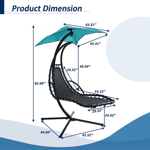 Metal Outdoor Chaise Lounge, with Removable Canopy, Built-in Pillow, Cushions, for Patio Porch Poolside (Blue)