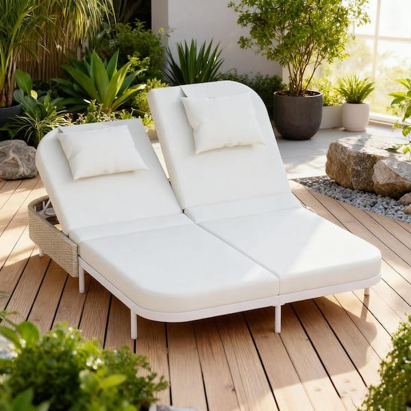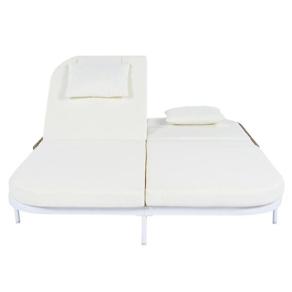 Metal Outdoor Day Bed, Patio Rattan Daybed with 5-Position Adjustable Backrest and Removable Cushions &Pillows