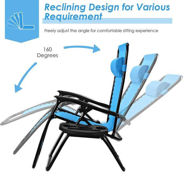 Metal Outdoor Recliner Adjustable Folding Patio Lounge Chair with Light Blue Cushion