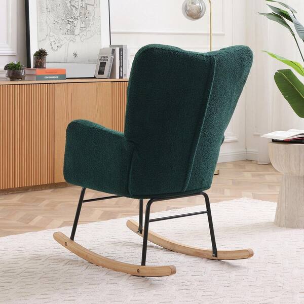 Metal Outdoor Rocking Chair Teddy Upholstered Glider Rocker Rocking Accent Chair with Green Cushion