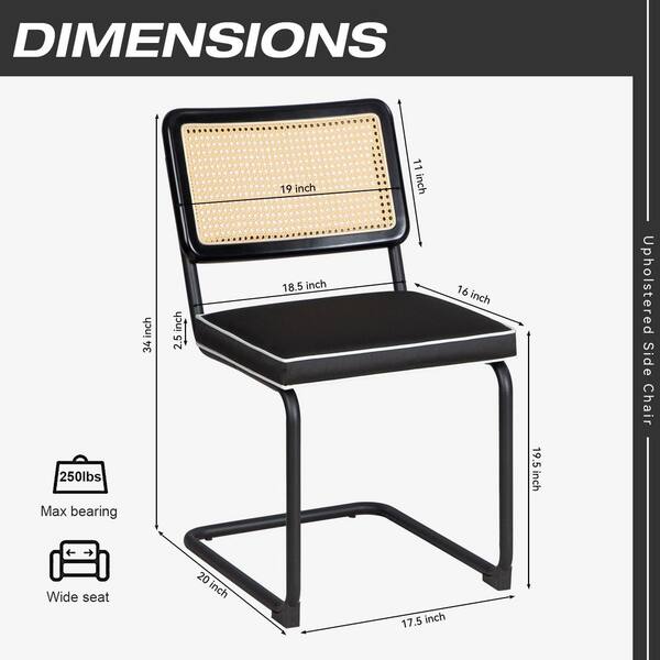 Metal Outdoor Upholstered Dining Chairs, Rattan Backrest Side Chairs with Waterproof Black Cushions (2-Pack)