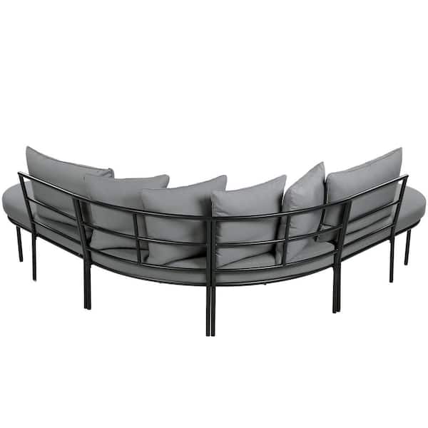 Metal Patio Half-Moon Curved Outdoor Sectional Set Furniture Sofa Set Conversation Set with Gray Cushions, Coffee Table