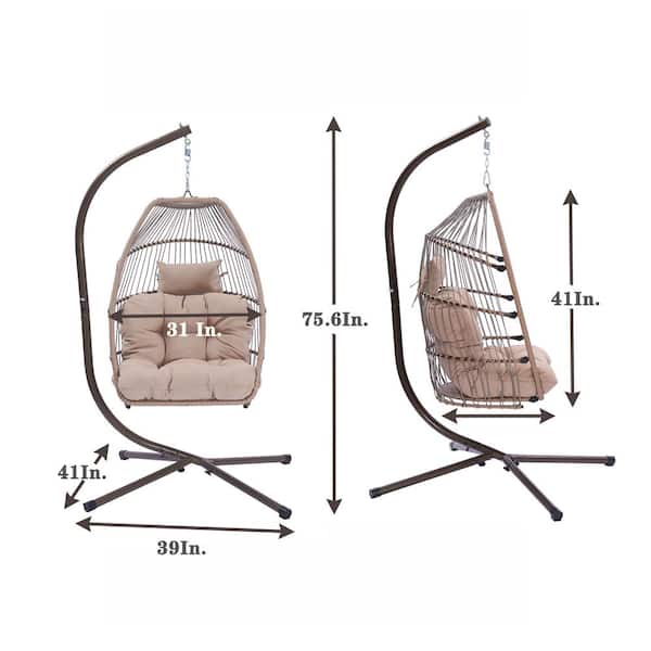 Metal Patio Swing with Cushion and Pillow in Khaki
