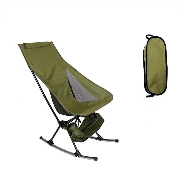 Metal Portable Camping Outdoor Rocking Chair 198 lbs. Weight Capacity Included Carry Bag High Back Rocker Chair Green