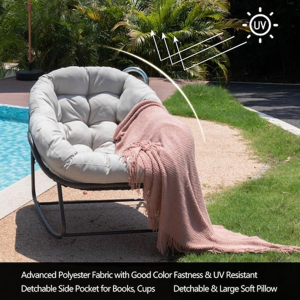 Metal Rattan Outdoor Rocking Chair Rocker Recliner Chair with Light Gray Cushion (1-Pack)