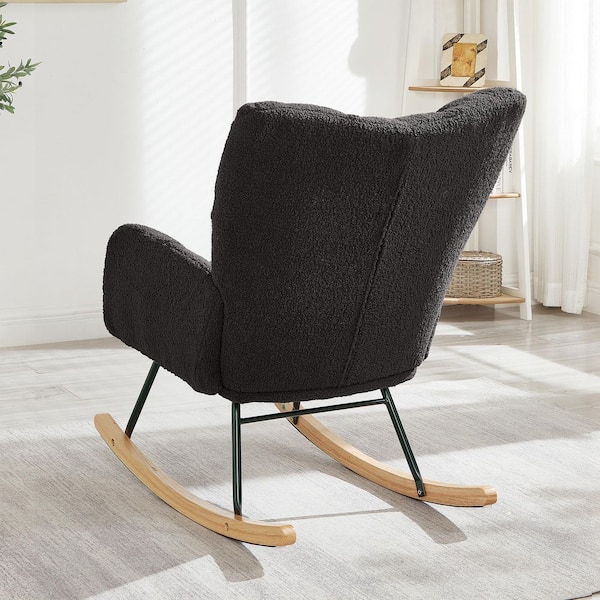 Metal and Teddy Fabric Outdoor Rocking Chair with Dark Gray Cushion, Modern Rocking Accent Chair