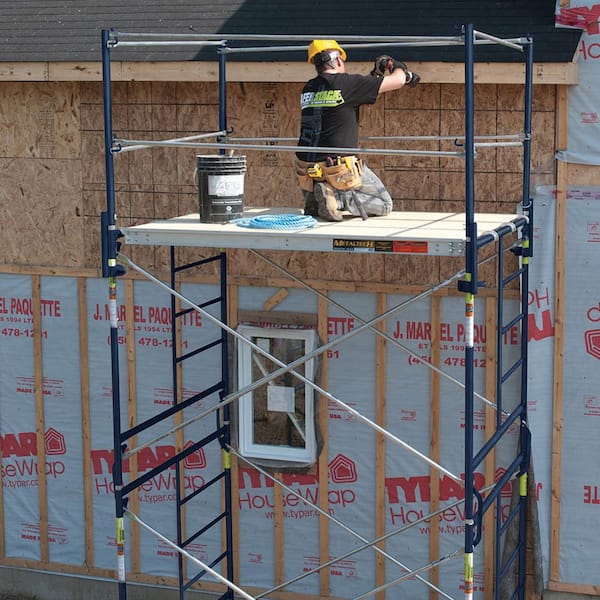 • Aluminum side rail with wood scaffold plank of 5/8 in. plywood