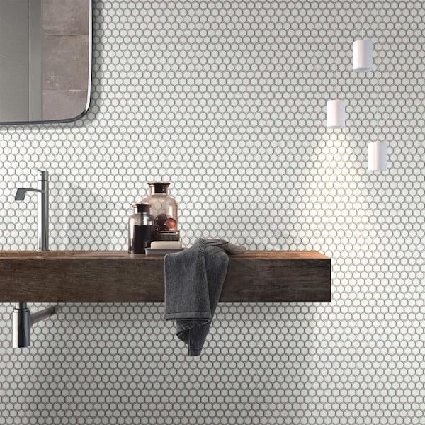 Metro Hex White 10.24 in. x 11.82 in. Glossy Porcelain Mosaic Tile Sample