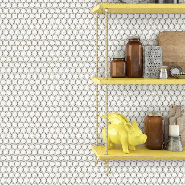 Metro Round White 12.41 in. x 11.46 in. Glossy Porcelain Mosaic Tile Sample