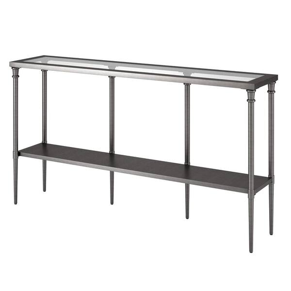 55 in. Aged Steel Rectangle Glass Console Table with Solid Metal Shelf