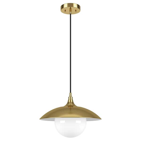 Alvia 60-Watt 1-Light Brass Pendant Light with White Metal and Glass Shade