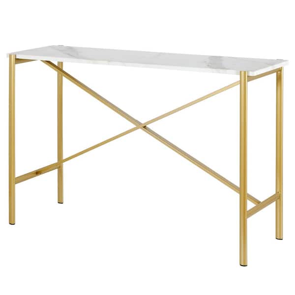 Braxton 46 in. Gold Rectangle Faux Marble Console Table