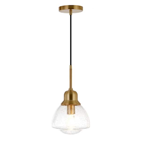 Brooks 1-Light Brass Pendant with Seeded Glass Shade