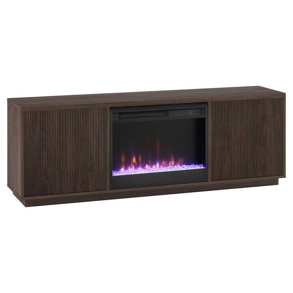 Hanson 70 in. Alder Brown TV Stand Fits TV's up to 75 in. with Crystal Fireplace Insert