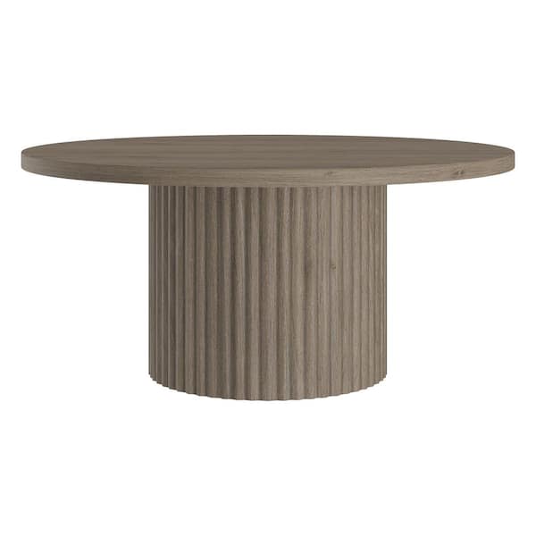 Rollan 32 in. Antiqued Gray Oak Round MDF Top Coffee Table