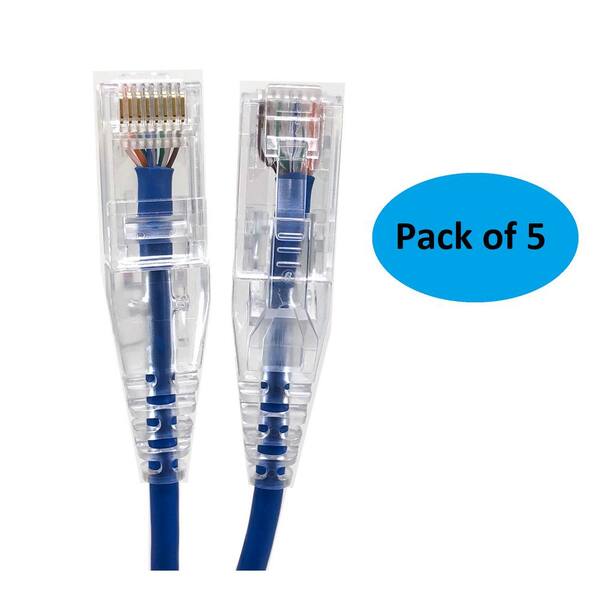1 ft. Cat 6A 28 AWG Ultra Slim Patch Cable, Blue (5-Pack)