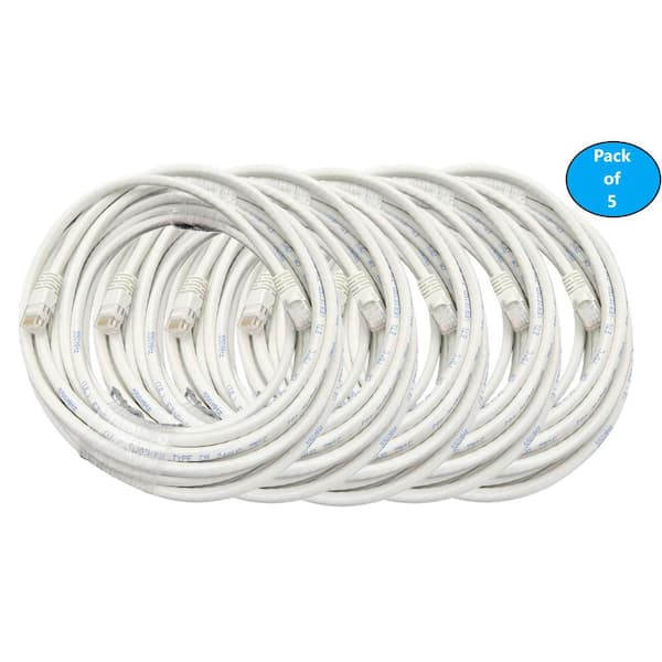 25 ft. Cat 6 Molded Snagless RJ45 UTP Networking Patch 24AWG Cable, White (5-Pack)