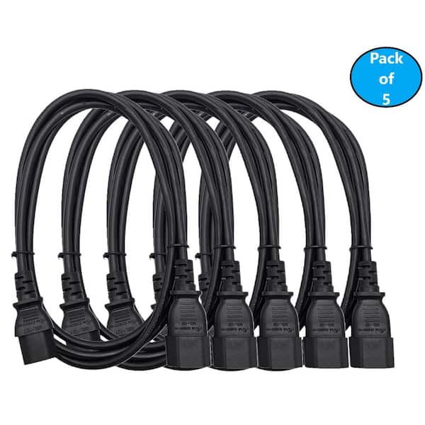 3 ft. AC Power Extension Cord (18AWG) / 3-Conductors / (C13 to C14) / Indoor (Black) 5-Pack