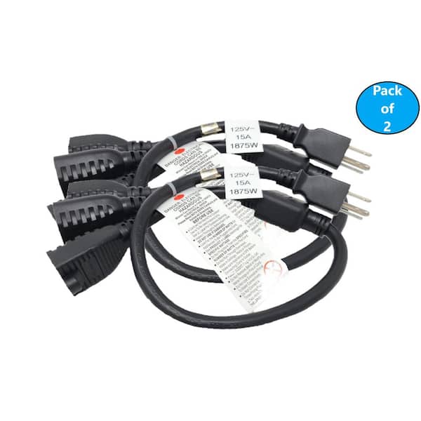 30 in. (2.50 ft.) 1 to 3 Heavy-Duty 14/AWG 3-Conductors Indoor Power Cord Splitter NEMA 5-15P to 5-15R x 3 Black 2-Pack