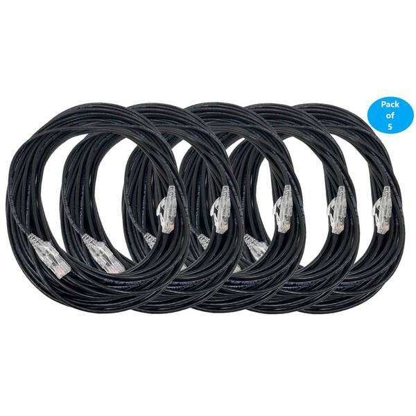 50 ft. 28AWG Ultra Slim CAT6 Patch Cables, Black (5 per Pack)