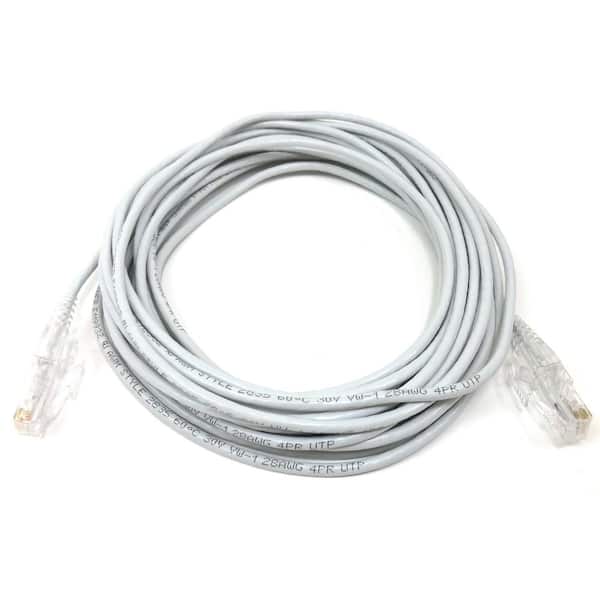 50 ft. 28AWG Ultra Slim CAT6 RJ45 Unshielded Twisted Pair Patch Cable, White