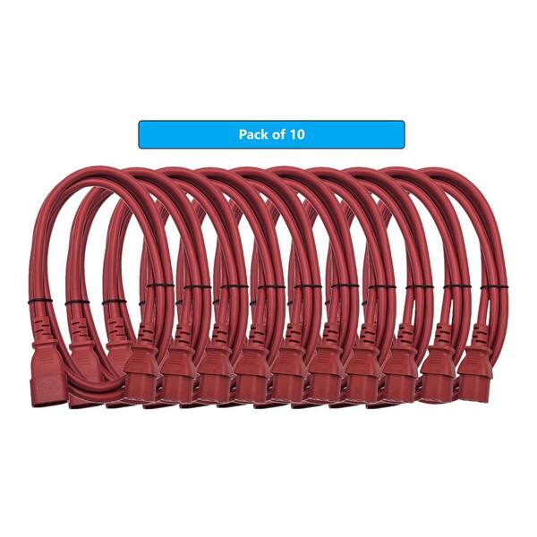 6 ft. AC Power Extension Cord (18AWG) / 3-Conductors / (C13 to C14) / Indoor (Red) 10-Pack