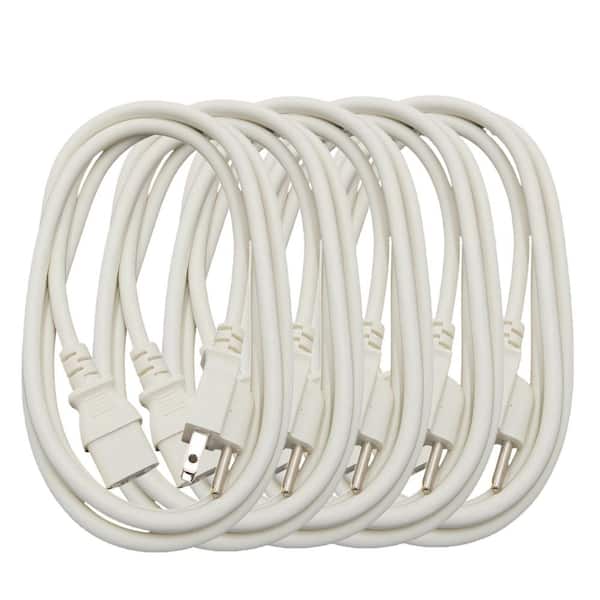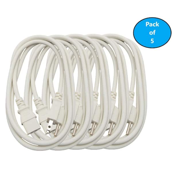 6 ft. Universal AC Power Cord UL Approved NEMA 5-15P to C13 18 AWG / 3-Conductors Indoor White (5-Pack)