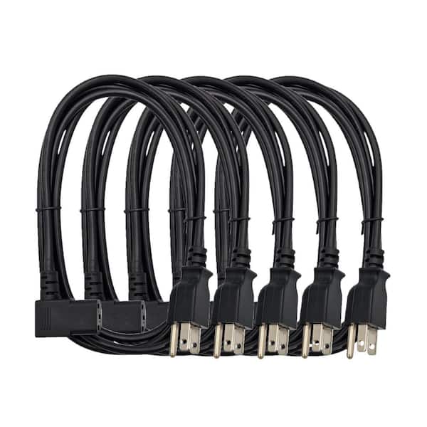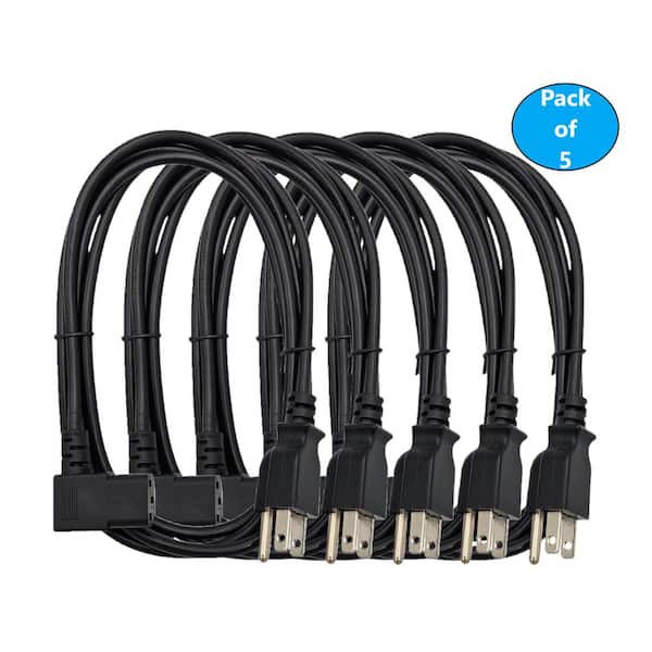 6ft. Universal Right Angle AC Power Cord 18AWG / 3 Conductors (NEMA 5-15P to C13) Indoor Black 5-Pack