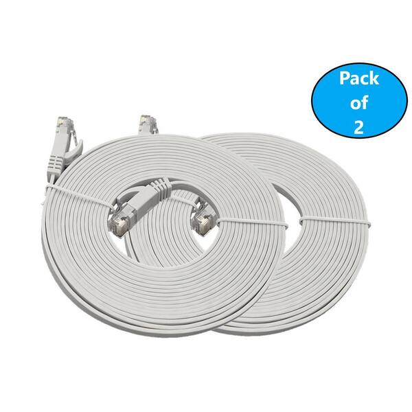75 ft. RJ45 Cat 6 Unshielded Twisted Pair Patch Cable, Flat White (2-Pack)