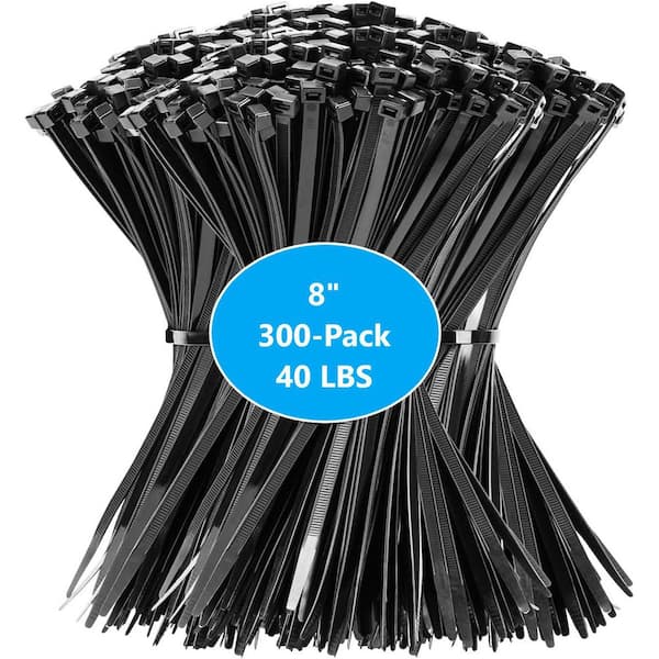 8 in. Cable Zip Tie 40 lbs. Multi-Purpose Self-Locking Black (300-Pack)