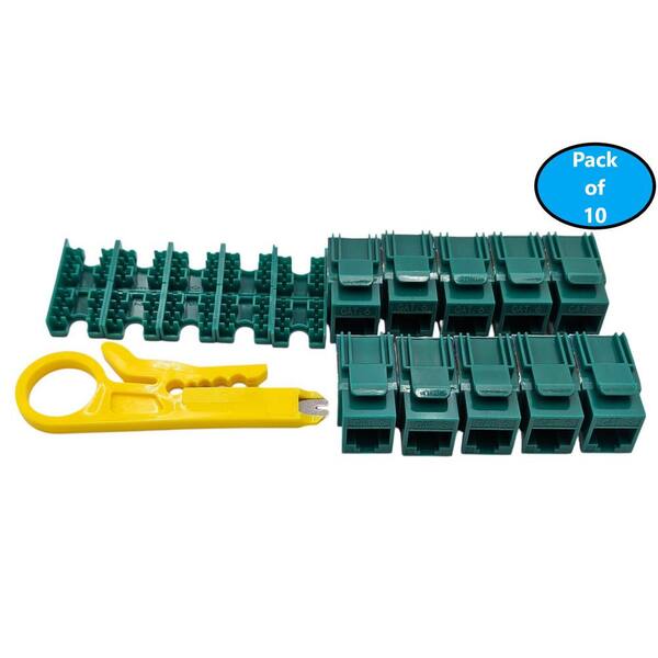 CAT6 Unshielded Punch Down Keystone Jack with Tool in Green (10-Pack)