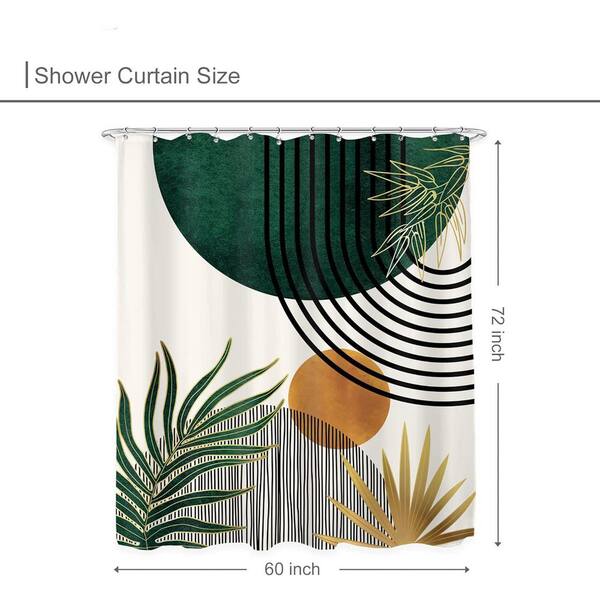 Mid Century Modern Boho Shower Curtain 60x72 Fabric Liner Leaf Abstract Botanical Design with Hooks Polyester Green