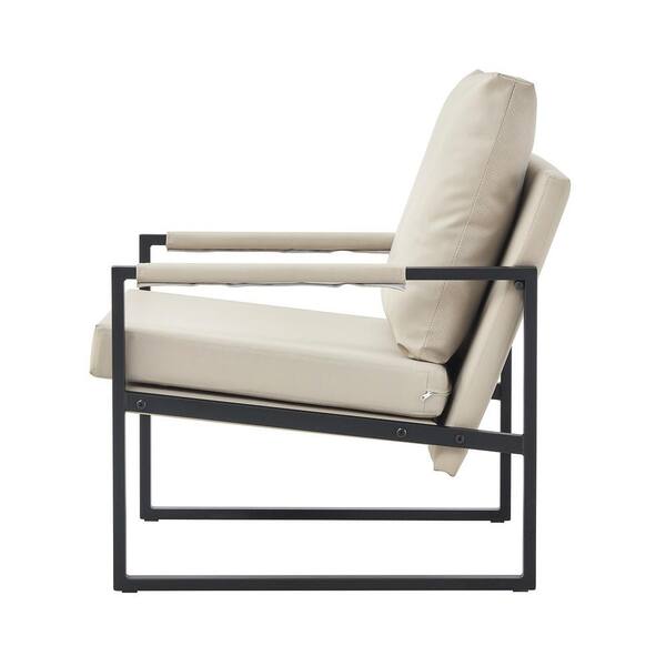 Mid Century Modern Light Brown PU Leather Armchair with Metal Frame, Extra-Thick Padded Backrest and Seat Cushion