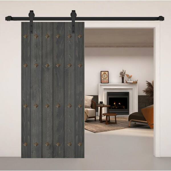 Mid-Century New Style 38 in. x 84 in. Carbon Gray DIY Solid Wood Sliding Barn Door Slab