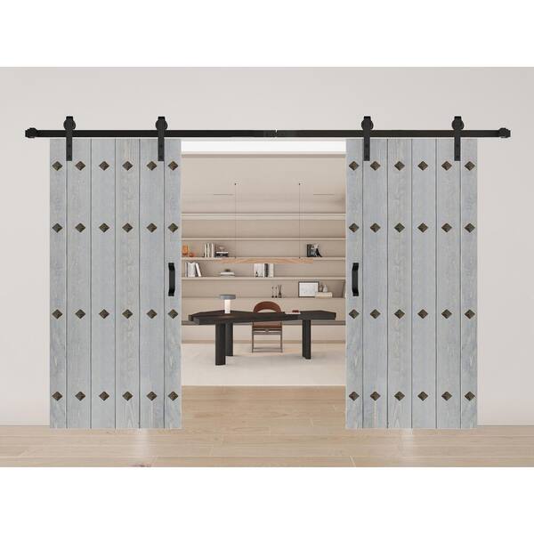 Mid-Century New Style 72 in. x 84 in. French Gray Finished Solid Wood Double Sliding Barn Door with Hardware Kit
