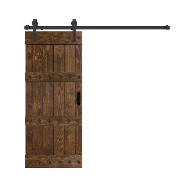 Mid-Century Style 36 in. x 84 in. Dark Walnut Solid Wood Sliding Barn Door with Hardware Kit - Assembly Needed