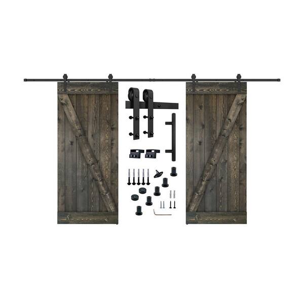 Mid Lite Series 30 in. x 84 in. Fully Set Up Ebony Finished Pine Wood Sliding Barn Door with Hardware Kit