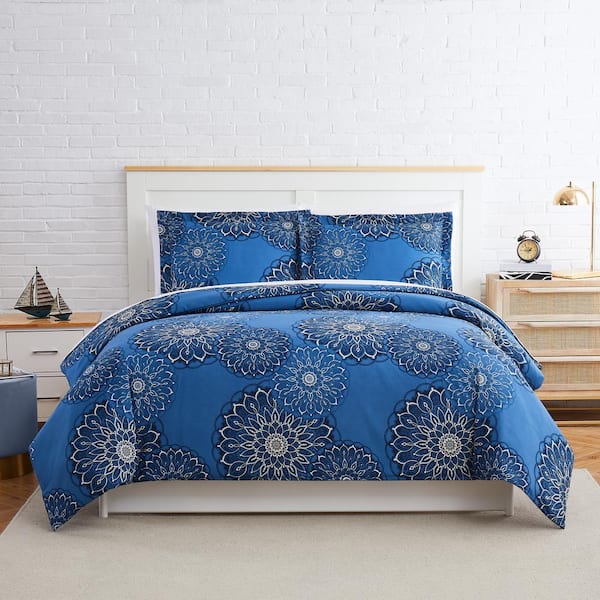 Midnight Floral 3-Piece Blue Full/Queen Microfiber Duvet Cover Set