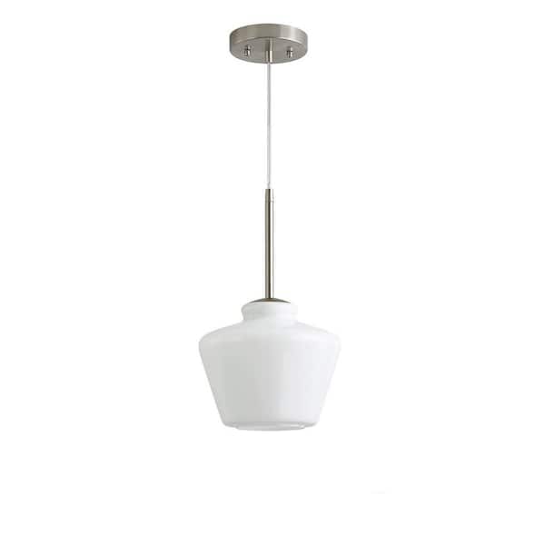 Midtown 1-Light Brushed Nickel Pendant Light with White Glass Shade