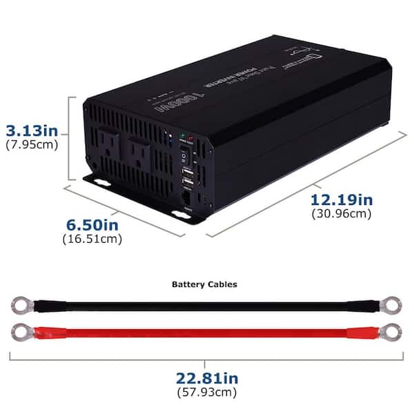 12-Volt 1000-Watt Pure Sine Wave Inverter with Wired LCD Remote Control, 12-Volt DC to 120-Volt AC Power Converter
