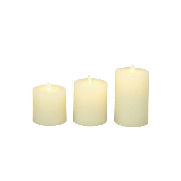 Milky Beige Flameless Wax Round with Flat Top Pillar Candles (Set of 3)