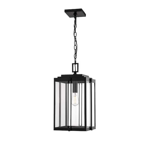 1-Light 12 in. Powder Coat Black Outdoor Lantern Pendant